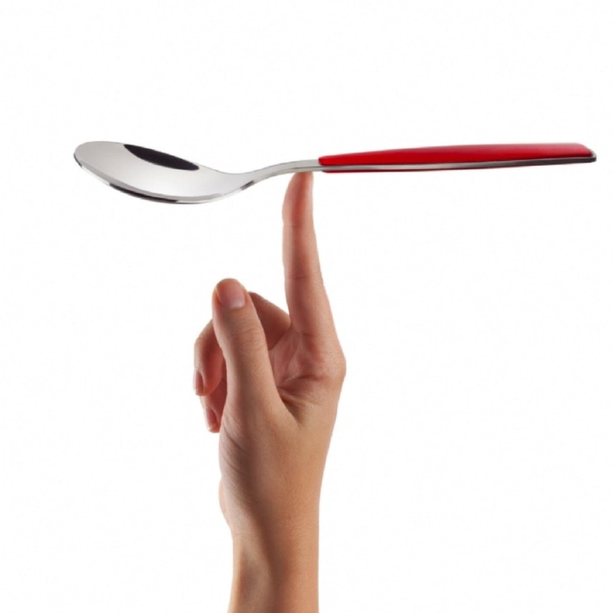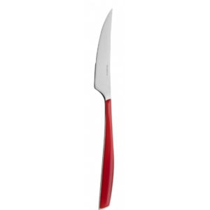 Couverts Bugatti Glamour Rouge, en acier massif 18/10, de 2,5 mm d’épaisseur, manche en SAN transparent avec nuance de couleurs.