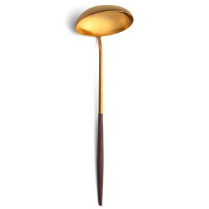 Couverts Mio Cutipol marron et doré mat. Vente à l’unité.